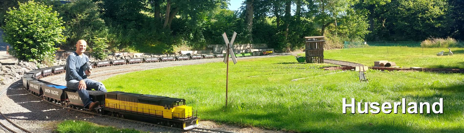 Was als Berufswunsch aus Kindheitstagen auf der Strecke blieb, gönnte ich mir als Hobbyeisenbahner. Auf einem Streckennetz mit 127mm Spurweite ist man im Huserland unterwegs. Maßstäbliche Lokomotiven und Wagen befördern Kinder und Erwachsene (welche sich das trauen...) über die Gleisstrecken. Modelle von Diesel-, Elektro- und Dampfloks sind im Einsatz. Diesel- und Elektroloks werden über Elektroantrieb mit Akku als Energiespender angetrieben. Bei den Dampfloks sorgen Feuer, Wasser und Kohle für die notwendige Energie die Dampfmaschine in Bewegung zu versetzen.