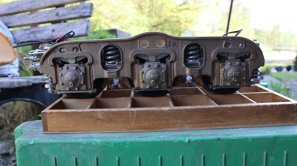 Hightech aus dem Bastelkeller. Wulf-Dieter Heinrich hatte eines seiner in Arbeit befindlichen Tender-Drehgestelle mitgebracht.
